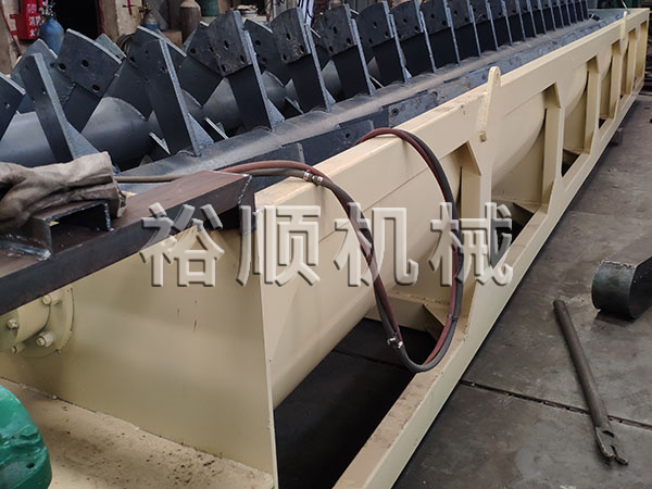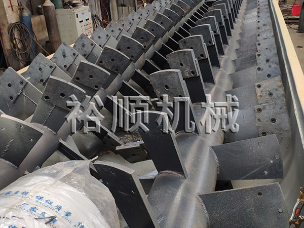 螺旋洗石機(jī)主要由槽體、減速機(jī)、電機(jī)、中心軸、螺旋葉片、支架組成。支架焊接在中心軸上,螺旋葉片裝好后用螺栓壓緊,使葉片不下垂不變形。